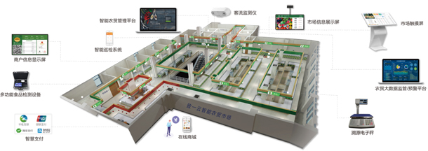 一是計(jì)劃引入智能農(nóng)貿(mào)管理平臺(tái),集中整合支付溯源管理、信息公示管理、商戶管理、檢測(cè)管理、物業(yè)管理、客流分析等十六大功能,并整合完成監(jiān)控系統(tǒng)、門禁系統(tǒng)的統(tǒng)一調(diào)度。此外,消費(fèi)者在完成消費(fèi)后,可在經(jīng)營(yíng)戶評(píng)價(jià)系統(tǒng)中進(jìn)行星級(jí)評(píng)分,商戶星級(jí)將在電子屏上實(shí)時(shí)公示,為消費(fèi)者購(gòu)物提供決策依據(jù)。