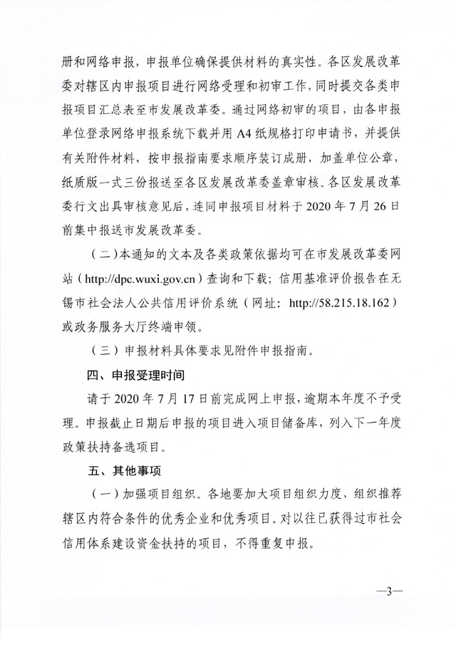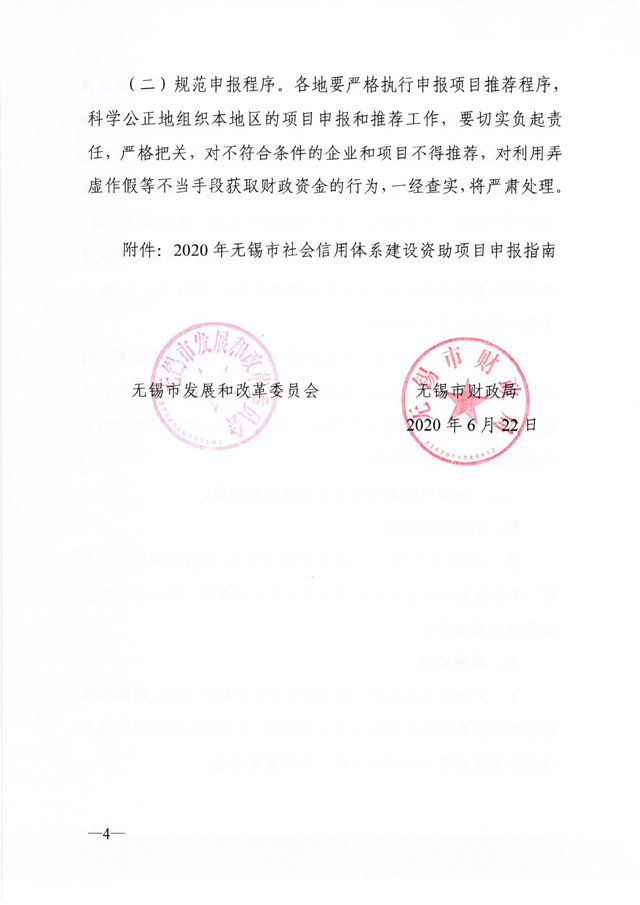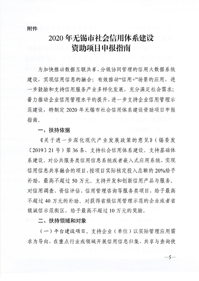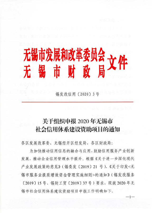 錫發(fā)改信用〔2020〕3號關于組織申報2020年度無錫市社會信用體系建設資助項目的通知