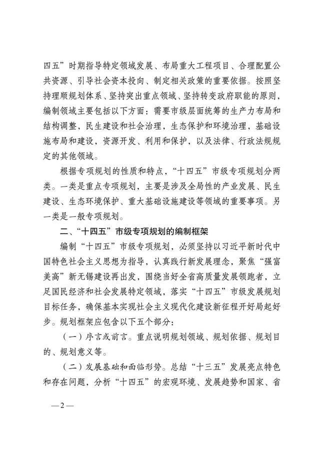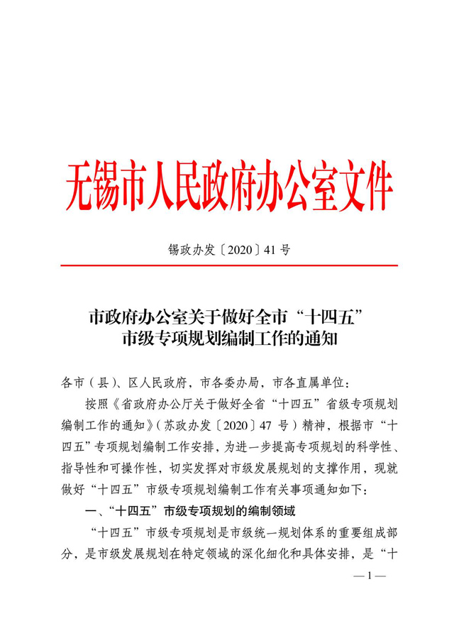 市政府辦公室關(guān)于做好全市“十四五”市級專項規(guī)劃編制工作的通知(錫政辦發(fā)[2020]41號)