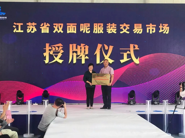 (江蘇省紡織協(xié)會為無錫東港雙面呢服裝市場總經(jīng)理周裕翔授牌一一江蘇省雙面呢服裝交易市場)