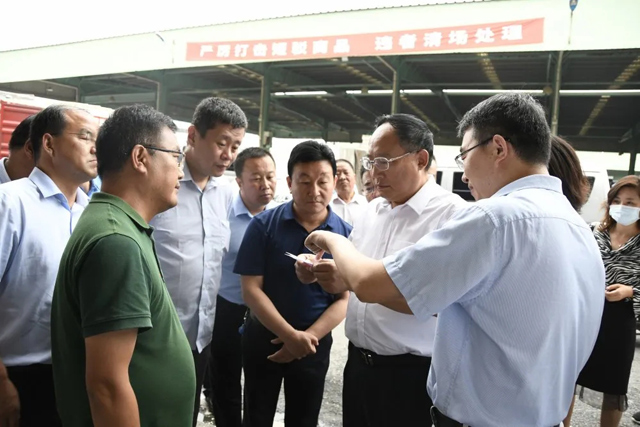 考察團(tuán)一行先后參觀了朝陽陳列館、三中心、蔬菜、水果兩大市場(chǎng)、冷庫(kù)、北二庫(kù)及糧油市場(chǎng),深入了解了朝陽大市場(chǎng)近年來的建設(shè)發(fā)展以及甘肅農(nóng)產(chǎn)品在市場(chǎng)的銷售情況。在蔬菜市場(chǎng)蘭州貨區(qū)域,來訪一行還與客商進(jìn)行了親切交談,詢問相關(guān)銷售情況。