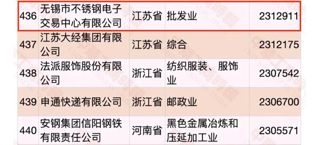 9月10日,全國工商聯(lián)在北京發(fā)布了2020中國民營企業(yè)500強(qiáng)榜單,無錫市26家企業(yè)成功入圍,入圍企業(yè)數(shù)與蘇州并列全省第一。我區(qū)無錫不銹鋼電子交易中心有限公司再次入圍全國民營企業(yè)500強(qiáng)。