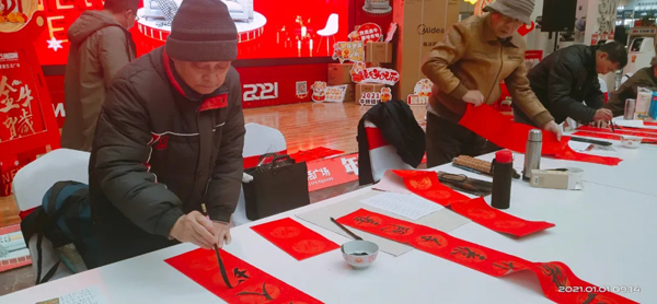 無錫五洲國際家居生活廣場書法家們現(xiàn)寫春聯(lián)現(xiàn)場掛著驚喜福袋滿滿的都是新春福氣總銷售額破1888萬元的喜人成績是錫城人民對我們的信賴