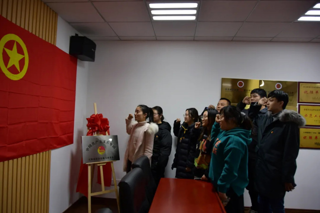 下午14:30,會議在莊嚴的國歌聲中正式開幕。首先由共青團梁溪區(qū)委書記徐黎和新任的盛陽食品城團支部書記李飛龍上臺為盛陽團支部進行揭牌。揭牌過后,徐書記分別從團員、團支部、團組織三個