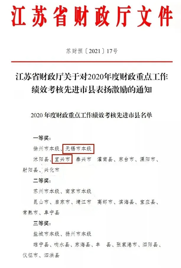 無(wú)錫市本級(jí)和宜興市,獲評(píng)一等獎(jiǎng)!