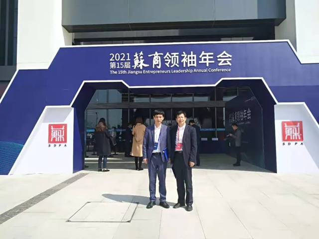 2021年4月9日~10日,“2021(第15屆)蘇商領(lǐng)袖年會”在江蘇南京市溧水區(qū)舉辦。4月的中國江蘇白馬農(nóng)業(yè)國際博覽中心國際會議中心四周,群山樹木青翠,百花點綴綠水環(huán)繞,蘇商群賢再次聚首,大會為弘揚企業(yè)家精神,提振發(fā)展信心,共同為廣大蘇商2021年再攀高峰謀篇布局。無錫盛陽食品城有限公司常務副總?cè)A曙東同志、總助丁偉峰同志受蘇商會邀請,代表龔志勇董事長出席此次盛會。