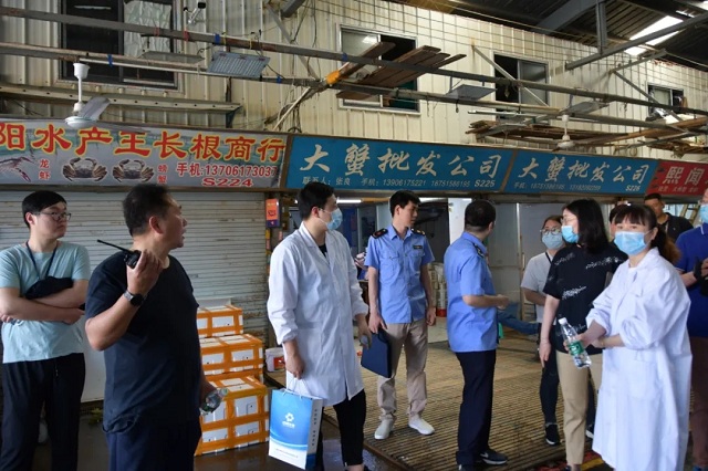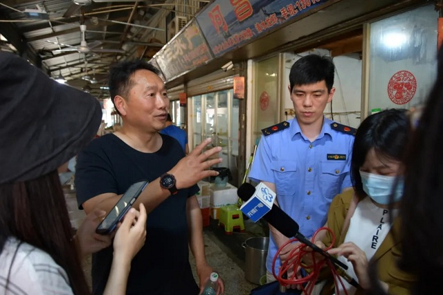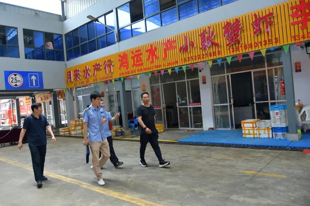 期間,華總向檢查組成員和媒體朋友介紹了盛陽食品城小龍蝦銷售情況以及公司采用的區(qū)域化管理模式,其中小龍蝦日交易量占到了整個無錫市場日交易量的90%以上(目前日均銷量20萬斤左右),對整個無錫市場的保供穩(wěn)價起到重要作用;在小龍蝦流動快檢點(盛陽螃蟹交易區(qū)三期),馮總給現(xiàn)場的新聞媒體講解了盛陽食品城的食品安全管理制度,馮總表示:針對進入市場銷售的水產(chǎn)品,市場職能部門嚴(yán)格遵循市場監(jiān)督管理局和無錫食品科技園下達的食品索證索票和食品安全快速檢測管理制度,利用市場電子溯源系統(tǒng)和人工登記準(zhǔn)入制度,嚴(yán)格做到銷售商品“來源可溯,去向可追”,并在盛陽市場嚴(yán)格執(zhí)行“先檢后售”、“市場商鋪、銷售商品全覆蓋輪流抽檢”的食品快檢流程,嚴(yán)守農(nóng)批市場主體管理責(zé)任,為守護錫城百姓餐桌安全盡心盡力。