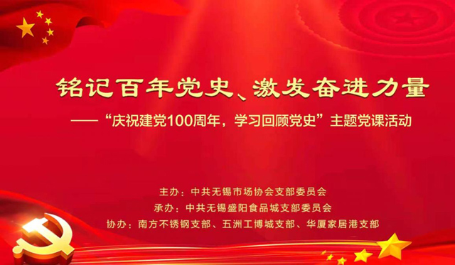 在偉大的中國共產(chǎn)黨百年華誕即將到來之際,為大力宣傳黨的光輝歷程,繼承和發(fā)揚(yáng)黨的優(yōu)良傳統(tǒng)和作風(fēng),教育引導(dǎo)廣大黨員進(jìn)一步堅(jiān)定理想信念,激發(fā)全體黨員奮進(jìn)力量,增強(qiáng)黨支部在市場建設(shè)發(fā)展、運(yùn)營中的凝聚力、號召力和戰(zhàn)斗力,增強(qiáng)廣大黨員榮譽(yù)感、使命感和責(zé)任感,2021年6月17日,由中共無錫市場協(xié)會(huì)支部委員會(huì)主辦,中共無錫盛陽食品城支部委員會(huì)承辦,南方不銹鋼、五洲工博城、華廈家居港三家黨支部協(xié)辦的“慶祝建黨100周年 學(xué)習(xí)回顧黨史”黨課主題教育活動(dòng)在無錫盛陽食品城有限公司八號樓三樓多功能室隆重舉行。會(huì)議由市場協(xié)會(huì)黨支部書記楊四方同志主持。50余名黨員代表參加此次黨課活動(dòng)。
