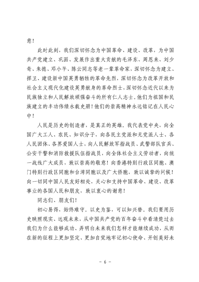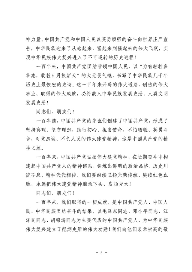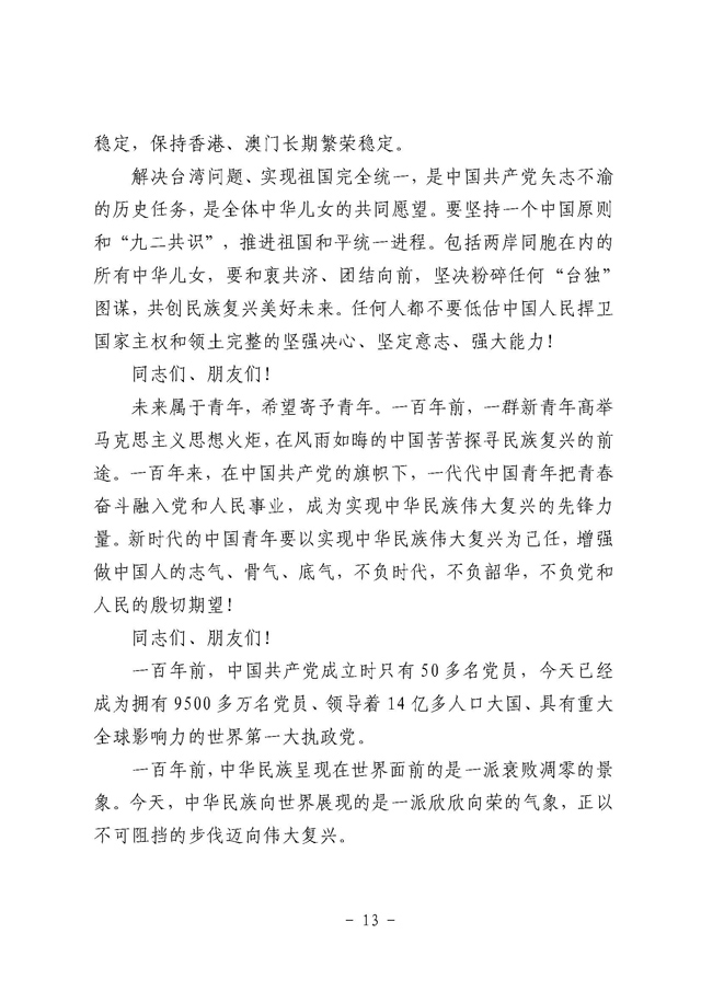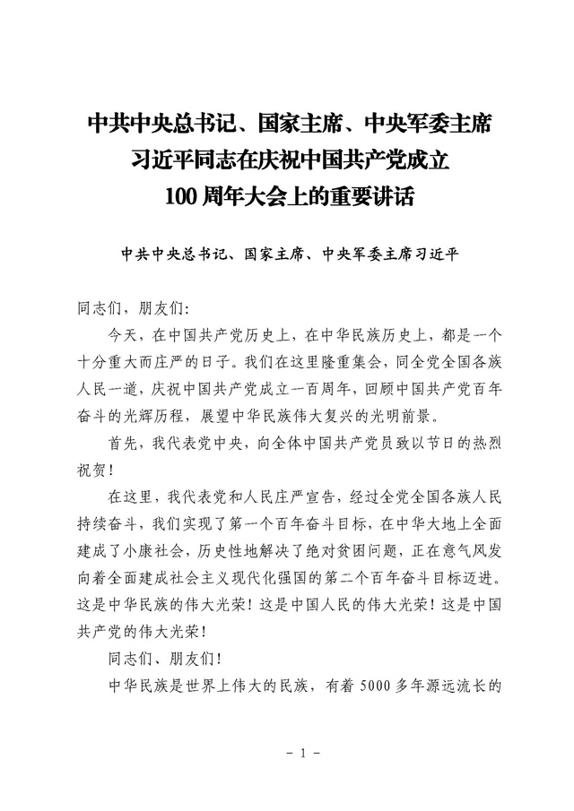 中共中央總書(shū)記、國(guó)家主席、中央軍委主席習(xí)近平同志在慶祝中國(guó)共產(chǎn)黨成立100周年大會(huì)上的重要講話