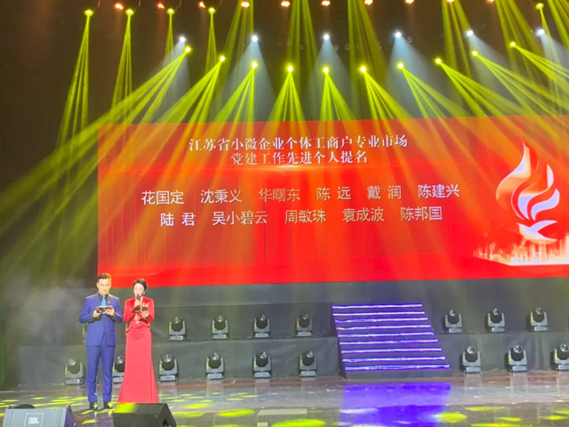 為慶祝建黨100周年,展現(xiàn)近年來我市“小個(gè)?!秉h建成果,增強(qiáng)“小個(gè)?!鳖I(lǐng)域黨組織的凝聚力和戰(zhàn)斗力,2021年6月18日下午2:30,無錫市委“兩新”工委、無錫市市場監(jiān)管局和無錫市私營個(gè)體經(jīng)濟(jì)協(xié)會(huì)組織開展的“微光成炬”——無錫市小微企業(yè)個(gè)體工商戶專業(yè)市場慶祝建黨100周年活動(dòng),在湖濱路4號(hào)廣電1000平演播大廳(無錫音樂廳)隆重舉辦。市委組織部副部長、“兩新”工委書記林茂松,市市場監(jiān)管局黨組書記、局長許偉英,市委黨史學(xué)習(xí)教育第五巡回指導(dǎo)組副組長、市衛(wèi)健委二級(jí)調(diào)研員楊如年,市市場監(jiān)管局黨組成員、副局長張賢,市市場監(jiān)管局二級(jí)調(diào)研員、市私營個(gè)體經(jīng)濟(jì)協(xié)會(huì)會(huì)長盛小偉等多位領(lǐng)導(dǎo)出席活動(dòng)。許偉英局長為活動(dòng)致辭。中國共產(chǎn)黨無錫盛陽食品城有限公司支部委員會(huì)書記華曙東同志及支部成員朱月娥同志一同參加了本次活動(dòng)。