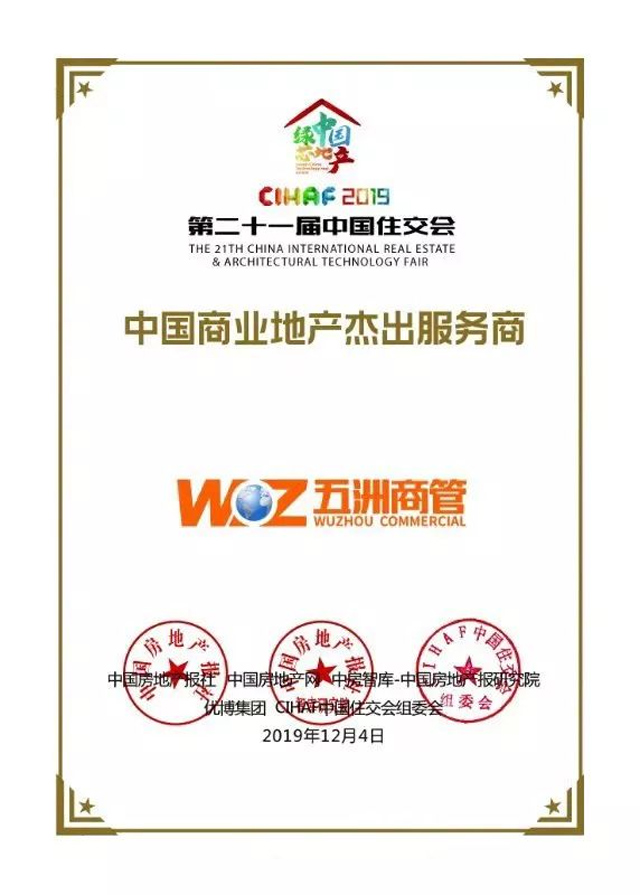 五洲商管集團(tuán)管理的各項(xiàng)目也多次榮獲不同機(jī)構(gòu)和部門頒發(fā)的榮譽(yù)和表彰。