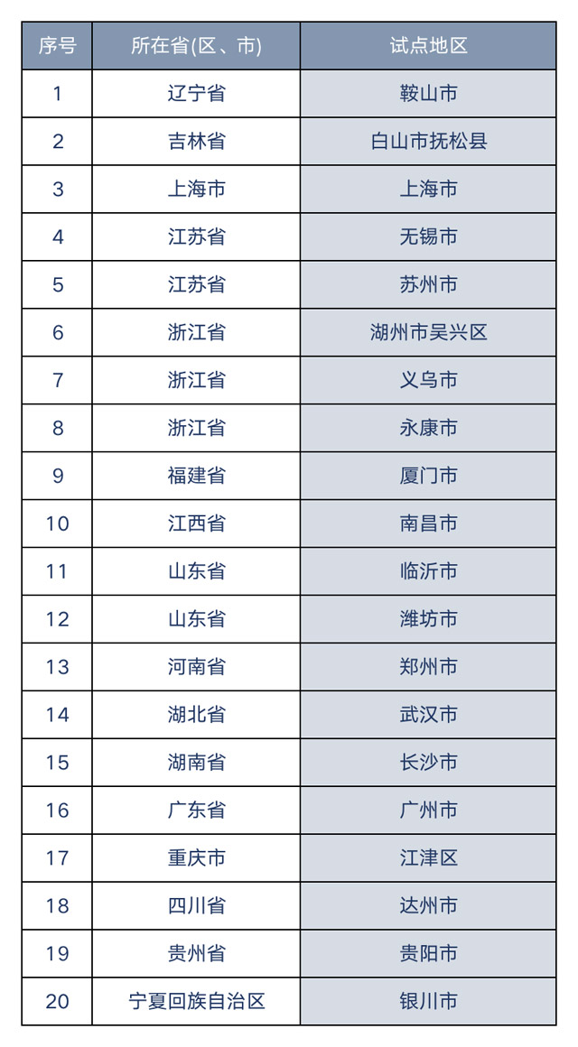 據(jù)悉,試點(diǎn)地區(qū)涉及16省、市、自治區(qū)的20個(gè)縣市區(qū)。公示期限為2021年8月9日-8月13日。
