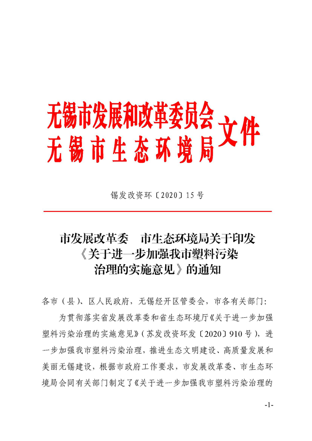 市發(fā)展改革委 市生態(tài)環(huán)境局關(guān)于印發(fā)《關(guān)于進(jìn)一步加強(qiáng)我市塑料污染治理的實(shí)施意見》的通知