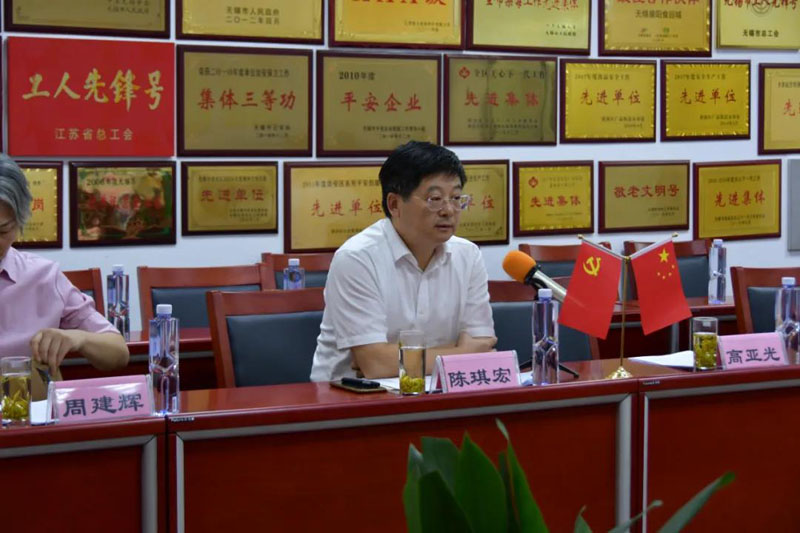 最后,江蘇省市場監(jiān)管局副局長陳琪宏同志發(fā)表了重要講話,他表示,此次省市場監(jiān)管局領(lǐng)導(dǎo)班子接到黨建工作掛鉤基層企業(yè)的任務(wù),主要是來調(diào)研、對接和相互學(xué)習(xí)的,黨建工作越到基層越豐富多彩,希望省局機(jī)關(guān)回去后把所見、所聞、所思認(rèn)真總結(jié);調(diào)研的目的,就是來到基層企業(yè)了解企業(yè)文化,學(xué)習(xí)黨建引領(lǐng)的新點子、新辦法。陳局長肯定了龔董事長愛國愛黨的思想行為,肯定了市里、區(qū)里、街道對掛鉤企業(yè)的大力支持與幫助。黨建工作收獲的成果,以黨建推動公司業(yè)務(wù)工作的開展,說在紙上,體現(xiàn)在行動中。此次調(diào)研有四個目的:第一,在企業(yè)經(jīng)營管理中要發(fā)揮黨建引領(lǐng)的核心作用,總結(jié)經(jīng)驗,悟出新點子;第二,搭建縱向、橫向互動交流平臺;第三,省級機(jī)關(guān)及各級部門與市里、區(qū)里、街道共同幫助企業(yè)紓困解難;第四,培育典型,總結(jié)經(jīng)驗,發(fā)掘先進(jìn)。陳局長同時指示要通過黨建引領(lǐng)推動促進(jìn)企業(yè)的發(fā)展,把組織的優(yōu)勢轉(zhuǎn)化為企業(yè)發(fā)展的優(yōu)勢,把組織的活力轉(zhuǎn)化為企業(yè)發(fā)展的動力,黨建引領(lǐng)有巨大的凝聚力,能夠動員、調(diào)動一切積極因素,能夠聚攏人心,這是黨的最重要的一個要素。如何將黨的元素成為企業(yè)文化中的元素,把黨的宏觀理論轉(zhuǎn)化為企業(yè)實際操作力。陳局還指出,盛陽食品城的擔(dān)當(dāng)意識超強(qiáng),在黨建工作中,把黨的號召力和企業(yè)領(lǐng)導(dǎo)的自身領(lǐng)導(dǎo)力融合在一起,把困難戶聚攏在自己的麾下,安心經(jīng)營,是為國家、為社會、為政府做出了很大的貢獻(xiàn),通過黨建激活企業(yè)發(fā)展的活力,這就是一種不局限于自己短期經(jīng)濟(jì)效益、著眼長遠(yuǎn)發(fā)展的企業(yè)家視野。最后,陳局表示,對盛陽食品城職工心理疏導(dǎo)工作的開展情況印象深刻,今后會擇時來盛陽進(jìn)行互動交流,通過多交流聽取基層建議,同時也會利用各方資源提供相應(yīng)幫助。
