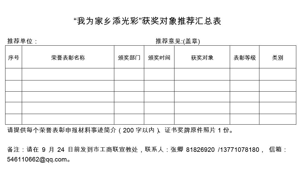 附件:“我為家鄉(xiāng)添光彩”獲獎(jiǎng)對(duì)象推薦匯總表
