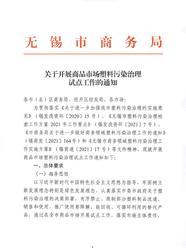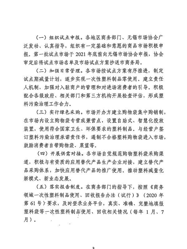 關(guān)于開展“塑料污染治理示范市場”試點工作的通知