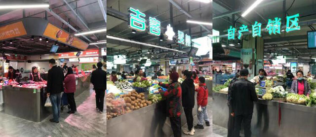 在規(guī)范化方面,盛世農(nóng)貿(mào)市場加強管理隊伍建設,對市場管理人員進行專業(yè)化管理,將培訓、例會、巡查等工作進行制度化落實。本著改善提升購物環(huán)境的宗旨市場內(nèi)安裝了中央空調(diào)新風系統(tǒng),并設有30 路高清探頭,24 小時監(jiān)控和廣 播系統(tǒng),增加了智能化停車道閘,室外機動車和非機動車停車場共計1300 平方米也進行了修復改造,由于下水管道堵塞和損壞而導致雨季路面積水嚴重,此次改造也做了大面積的翻新和修補。廁所也按照國家2 級標準進行了全面翻新,同時還改造了現(xiàn)代化辦公區(qū)?,F(xiàn)下疫情又起,作為人流量較大的場所,農(nóng)貿(mào)市場的疫情防控建設與宣傳就顯得尤為重要,市場全方位地做好了此項工作。