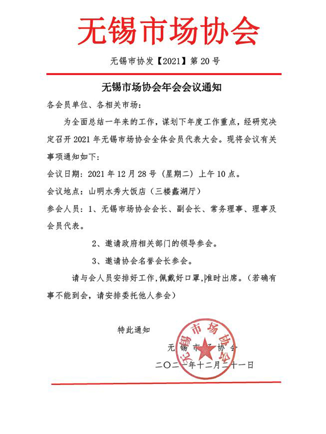 無錫市場協(xié)會(huì)年會(huì)會(huì)議通知