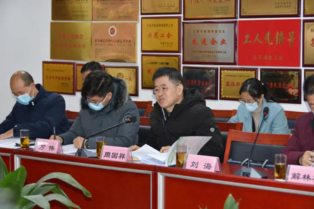 2021年12月30日,市產(chǎn)改工作調(diào)研評(píng)估觀摩活動(dòng)座談會(huì),在無錫盛陽食品城有限公司8號(hào)樓三樓多功能會(huì)議室隆重召開。由無錫市市委、市總工會(huì)、市委組織部、市發(fā)改委、市科技局、國(guó)資委、市工商聯(lián)等組成的調(diào)研評(píng)估小組,以及梁溪區(qū)委、區(qū)政府分管領(lǐng)導(dǎo),區(qū)產(chǎn)改辦、區(qū)產(chǎn)改聯(lián)席會(huì)議20家成員單位,出席了本次會(huì)議。匯報(bào)會(huì)議由新時(shí)代梁溪產(chǎn)業(yè)工人隊(duì)伍建設(shè)改革聯(lián)席會(huì)議辦公室主任,梁溪區(qū)總工會(huì)黨組書記、常務(wù)副主席王飚主持。