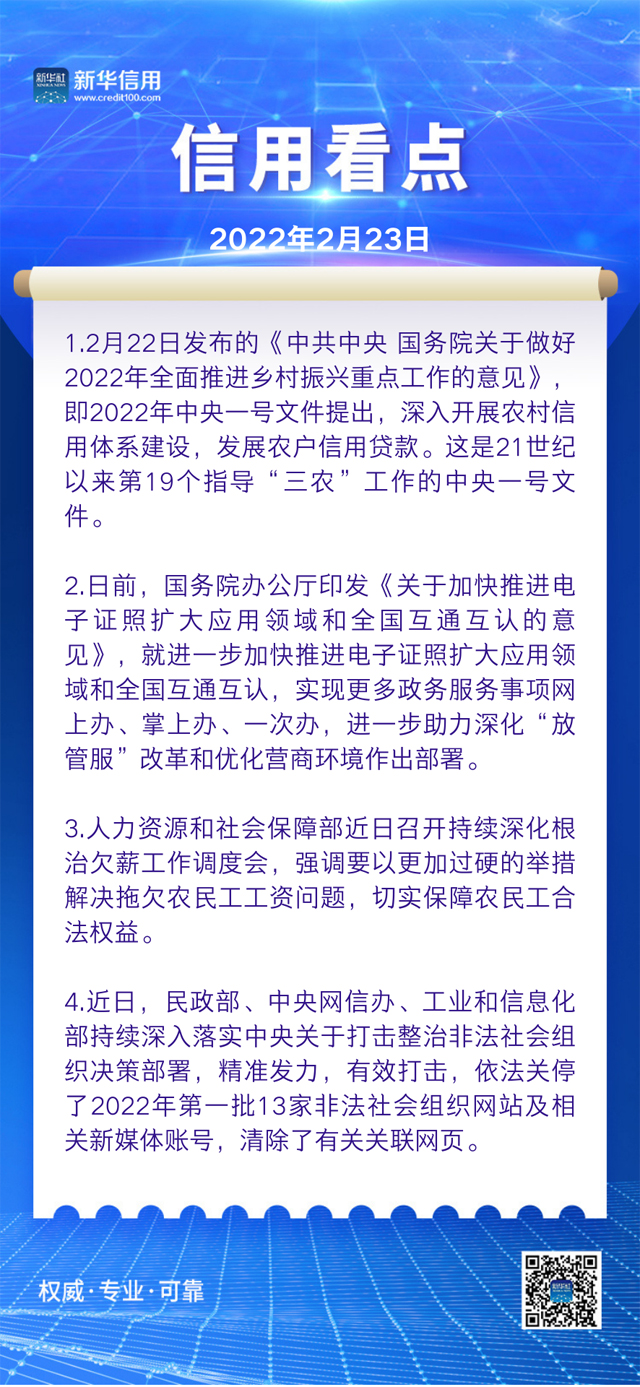 2022年中央一號文件:深入開展農(nóng)村信用體系建設(shè)