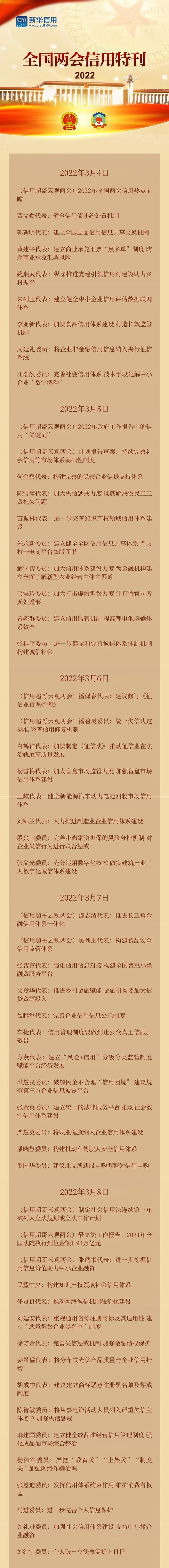 今年全國兩會期間,新華信用每日推出《2022年全國兩會信用特刊》,聚焦兩會期間人大代表、政協(xié)委員關(guān)于推進(jìn)信用建設(shè)的意見建議。