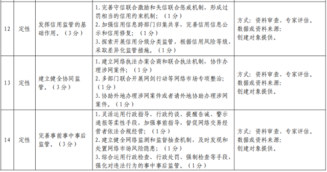 其中,在“規(guī)范監(jiān)管”方面,評估指標(biāo)體系設(shè)有“發(fā)揮信用監(jiān)管的基礎(chǔ)作用”,指標(biāo)得分為3分。包括:
