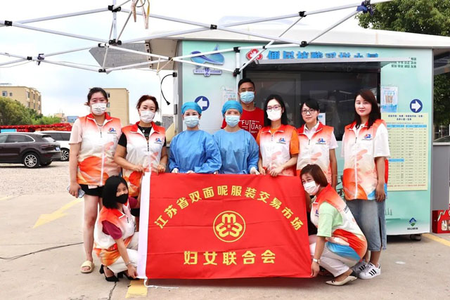為關(guān)愛(ài)堅(jiān)守在疫情防控一線的工作人員,6月20日,江蘇省雙面呢服裝交易市場(chǎng)婦聯(lián)班子帶隊(duì)到雙面呢市場(chǎng)內(nèi)的便民核酸采樣小屋慰問(wèn)工作人員,感謝他們的堅(jiān)守與辛勤付出。