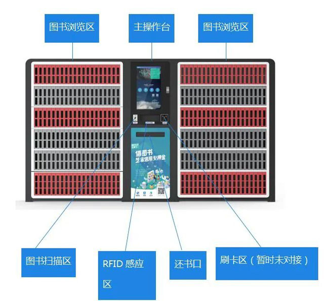感應(yīng)區(qū)還書:將書籍直接放入rfid感應(yīng)區(qū),待柜門打開,將書籍放入柜子,關(guān)上柜門,即還書成功