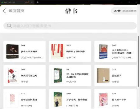 進(jìn)入借書頁(yè)面,可查詢當(dāng)前借閱柜上的所有可借閱書籍,如上圖