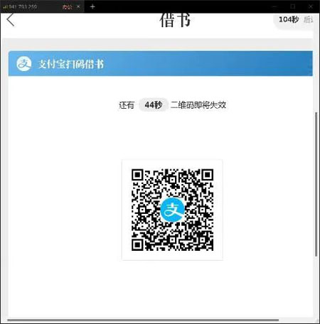 點(diǎn)擊進(jìn)入,支付寶掃碼查看本人所借書籍詳情,如上圖