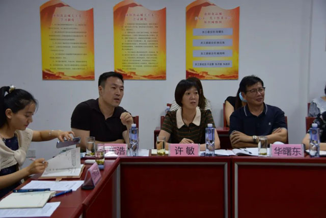 盛陽食品城總經(jīng)理龔志勇、黨支部書記華曙東分別從公司通過創(chuàng)造性的產(chǎn)銷對接實施、社會信用體系建設(shè)、區(qū)域網(wǎng)格化精準(zhǔn)自治共建、系統(tǒng)性的“產(chǎn)改六大工作法”等工作內(nèi)容,匯報了盛陽全面落實園區(qū)水產(chǎn)行業(yè)產(chǎn)業(yè)工人“雙提升”的工作開展思路。