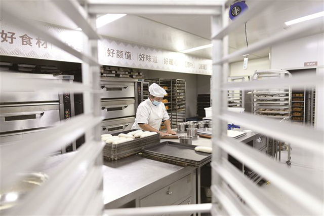 “味之工坊,味甘百年”的金橋國際食品城烘焙商戶內(nèi)景