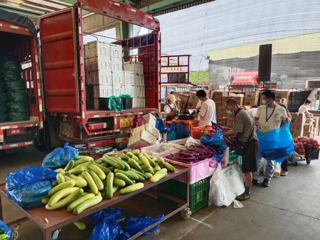 目前,市場(chǎng)內(nèi)蔬菜、水果一應(yīng)俱全,所有商品均有序供應(yīng),商品價(jià)格也相對(duì)穩(wěn)定。八月份以來(lái),蔬菜市場(chǎng)日均成交量達(dá)到2300噸以上,水果市場(chǎng)日均成交量達(dá)到2500噸以上。雖然受到極端高溫的影響導(dǎo)致部分蔬菜和水果基地產(chǎn)量下降,但是在市場(chǎng)員工和客商的通力合作下,通過(guò)多方組織貨源,八月上旬蔬菜成交量同比上升3.67%,水果成交量同比上升15.51%。市場(chǎng)內(nèi)庫(kù)存充足,商品新鮮安全,完全可以滿足市民正常需求。