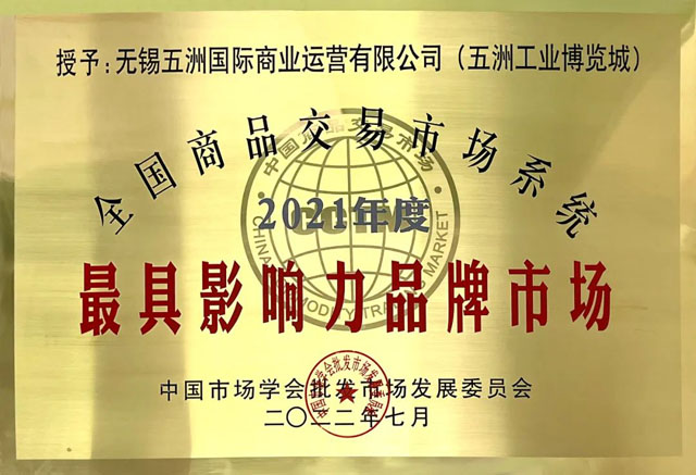 無(wú)錫五洲國(guó)際工業(yè)博覽城榮獲全國(guó)商品交易市場(chǎng)最具影響力品牌市場(chǎng)榮譽(yù)稱號(hào);