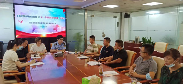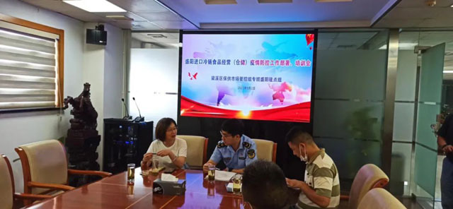 會議上,針對盛陽市場現(xiàn)有的5家涉及進口冷鏈食品經(jīng)營(倉儲)單位,蔣局強調(diào)了進口冷鏈疫情防控的重要性和必要性,并對壓實疫情防控責任、落實疫情防控措施進行詳細指導和嚴格要求: