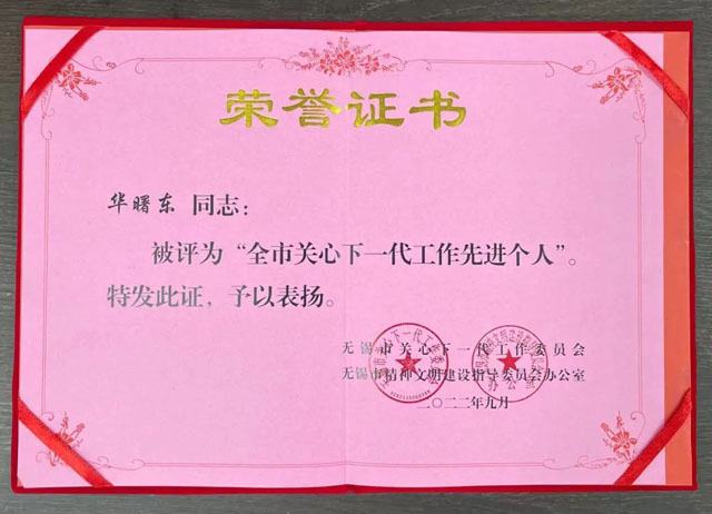 2022年9月,盛陽(yáng)食品城榮獲了由無(wú)錫市關(guān)心下一代工作委員會(huì)授予的“全市關(guān)心下一代工作標(biāo)桿企業(yè)”榮譽(yù)稱(chēng)號(hào)。此項(xiàng)榮譽(yù)的獲得,是對(duì)盛陽(yáng)食品城關(guān)工委在市、區(qū)、街道關(guān)工委的關(guān)懷、指導(dǎo)下和公司董事長(zhǎng)龔志勇的鼎力支持下,在強(qiáng)化黨建引領(lǐng)、堅(jiān)持立德樹(shù)人,注重問(wèn)題導(dǎo)向、創(chuàng)新思路舉措等方面開(kāi)展的關(guān)心下一代工作中取得的新成效的肯定。與此同時(shí),盛陽(yáng)食品城黨支部書(shū)記、常務(wù)副總、關(guān)工委主任華曙東同志,榮獲了由無(wú)錫市關(guān)心下一代工作委員會(huì)、無(wú)錫市精神文明建設(shè)指導(dǎo)委員會(huì)辦公室授予的“無(wú)錫市關(guān)心下一代工作先進(jìn)個(gè)人”榮譽(yù)稱(chēng)號(hào)。