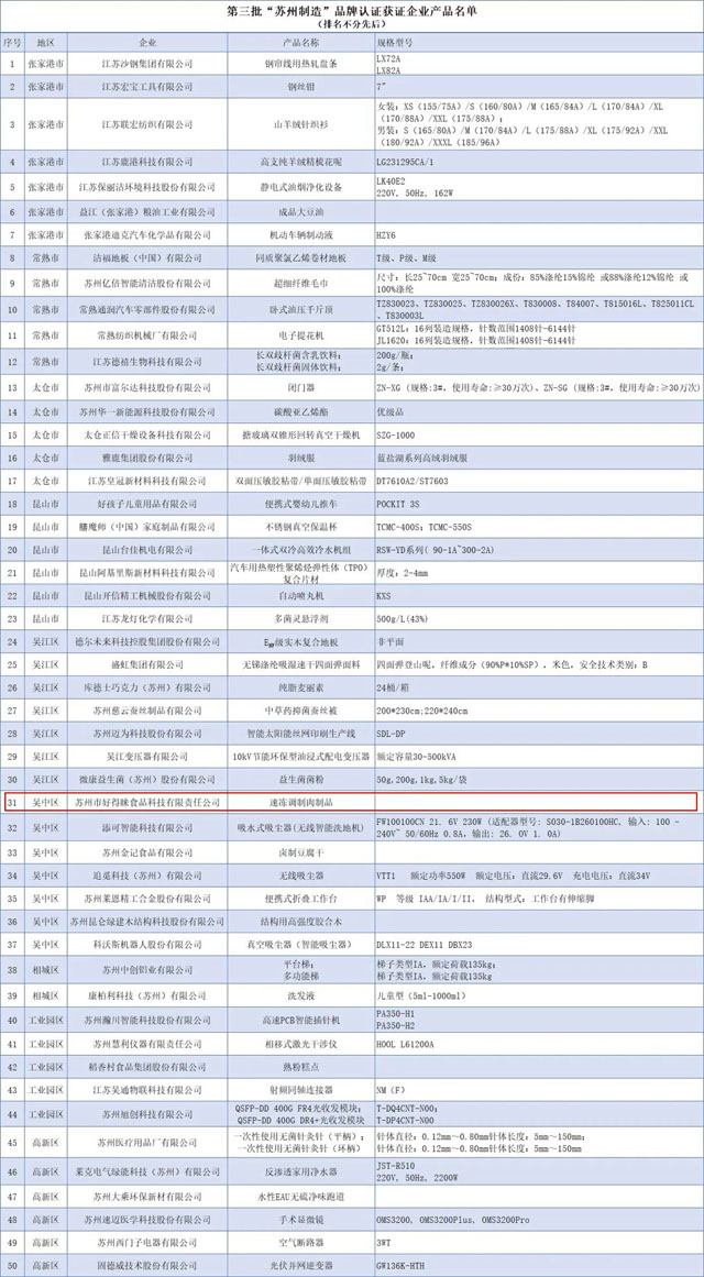 吳中區(qū)有七家企業(yè)獲評,好得睞憑借預(yù)制菜榮獲“蘇州制造”品牌認(rèn)證。