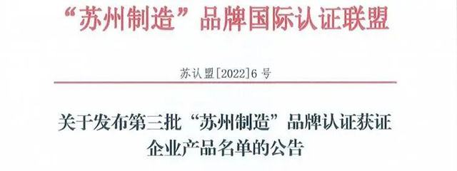 近日,2022年“蘇州制造”品牌國際認(rèn)證聯(lián)盟發(fā)布了第三批“蘇州制造”品牌認(rèn)證獲證企業(yè)產(chǎn)品名單。