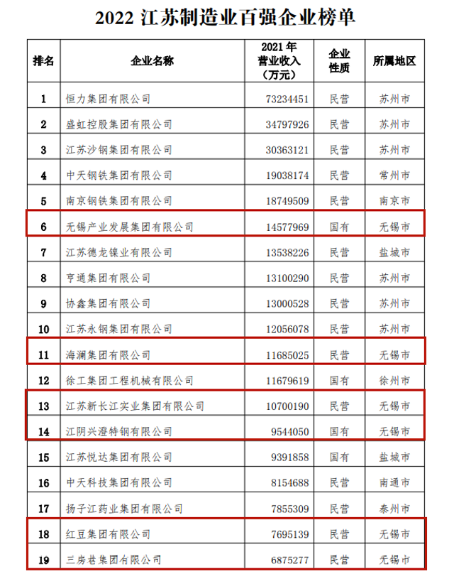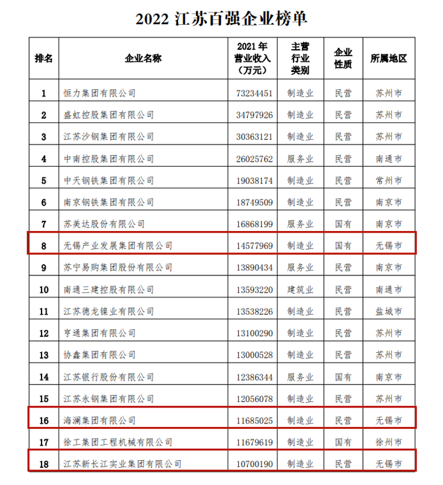 2022江蘇百強(qiáng)企業(yè),無錫多家企業(yè)上榜!