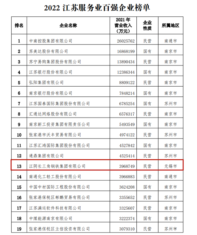 “2022江蘇服務(wù)業(yè)百強(qiáng)企業(yè)榜單”中