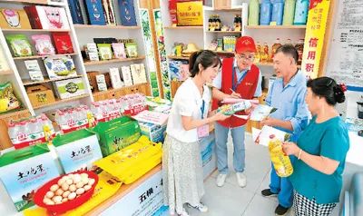 ▲在安徽省安慶市宜秀區(qū)五橫鄉(xiāng)楊亭村信用積分超市,村民正在用積分兌換生活用品。黃有安攝(人民視覺)