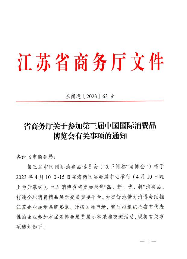省商務(wù)廳關(guān)于參加第三屆中國國際消費品博覽會有關(guān)事項的通知