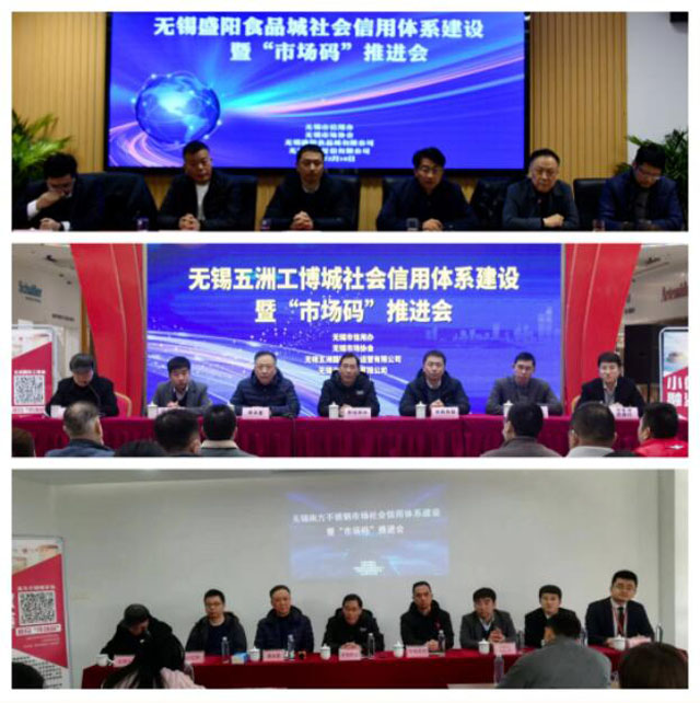 2023年2月,社會信用體系建設暨“市場碼”推進會陸續(xù)在無錫市盛陽食品城、五洲工博城、南方不銹鋼市場隆重召開。會議就市場碼的作用、功能、具體操作說明,以及貸款相關業(yè)務進行了介紹,各市場商戶踴躍參與,積極交流融資需求、貸款政策,相關工作人員引導商戶掃描現(xiàn)場掃碼,進一步提升各方參與度 。
