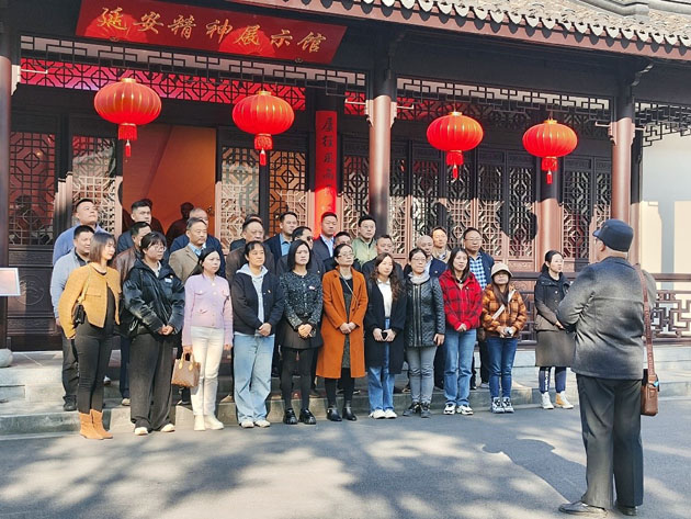 賡續(xù)“延安精神”——無錫市場協(xié)會黨建聯(lián)盟各黨支部赴延安精神展示館參觀學(xué)習(xí) 初冬的無錫,暖意融融。2023年11月21日上午,無錫市場協(xié)會執(zhí)行會長、黨建聯(lián)盟領(lǐng)導(dǎo)小組組長章永星,無錫市場協(xié)會黨支部書記、黨建聯(lián)盟領(lǐng)導(dǎo)小組副組長楊四方與無錫市市場監(jiān)督管理局第五黨支部許磊同志等21家黨建聯(lián)盟黨支部書記和黨員代表、入黨積極分子一行33人,赴延安精神無錫學(xué)習(xí)天地開展主題教育學(xué)習(xí)活動。 延安精神是解放思想、實(shí)事求是,是全心全意為人民服務(wù),是自力更生、艱苦奮斗。學(xué)精神,強(qiáng)黨性,不忘初心,牢記使命。在這里,大家汲取著紅色精神的滋養(yǎng);在這里,大家抖擻精神再出發(fā)。 今天參加活動的黨建聯(lián)盟黨支部主要有:無錫市場協(xié)會黨支部、無錫盛陽食品城有限公司黨支部、無錫市五洲國際工業(yè)博覽城黨支部、無錫市南方不銹鋼市場黨支部、無錫市梁溪區(qū)廣益街道尤渡社區(qū)委員會華廈家居港黨支部、無錫市國聯(lián)物資第一黨支部、江蘇港下雙面呢市場管理有限公司黨支部、萬力控股無錫皮革城黨支部、無錫新安感知市場管理有限公司黨支部、無錫市總商會臺州商會黨支部、無錫市房地產(chǎn)市場管理和監(jiān)測中心黨支部、無錫市中小企業(yè)發(fā)展服務(wù)中心黨支部、無錫市投資管理咨詢協(xié)會黨支部、無錫天鵬集團(tuán)第二支部第五黨支部、無錫市城投市場物業(yè)管理有限公司黨支部、無錫市濱湖區(qū)蠡湖街道蠡湖集貿(mào)市場黨支部、無錫市梁溪區(qū)崇安寺街道百歲坊巷社區(qū)第七黨支部、江陰市顧山農(nóng)貿(mào)市場黨支部等。除了以上18家黨建聯(lián)盟黨支部外,還有3家新加盟的黨支部:無錫市市場監(jiān)督管理局第五黨支部、無錫市商務(wù)局第三黨支部、無錫市知識產(chǎn)權(quán)協(xié)會黨支部。 活動由無錫市場協(xié)會黨支部書記、黨建聯(lián)盟領(lǐng)導(dǎo)小組副組長楊四方主持,他首先就今天活動的目的和參觀流程,向黨員們作了簡要介紹,并要求大家回去后,要把今天活動的精神傳達(dá)到各自黨支部知曉,撰寫參觀學(xué)習(xí)心得、體會,把延安精神主動升華為各自的內(nèi)驅(qū)力和行動力。 在參觀延安精神展示館時,全體人員認(rèn)真觀看和聆聽了習(xí)近平總書記2022年10月27日在瞻仰延安革命紀(jì)念地時的重要講話視頻。站在大屏幕前,大家駐足立正,屏住呼吸,一邊聆聽一邊思考。習(xí)總書記的講話清晰明亮地回響在寬敞的大廳里,像一道亮光指引著大家前進(jìn)的方向。 從延安精神展示館的第一部分“中共中央和紅軍長征的落腳點(diǎn)”開始,大家在講解員的引領(lǐng)下,移步換景,一一參觀著第二部分“中國人民抗日戰(zhàn)爭的政治指導(dǎo)中心”、第三部分“創(chuàng)建新民主主義的模范試驗(yàn)區(qū)”、第四部分“實(shí)施黨的建設(shè)偉大工程”、第五部分“毛澤東思想指導(dǎo)地位的確立”、第六部分“奪取全國勝利的出發(fā)點(diǎn)”、第七部分“延安精神的原生形態(tài)”等七大展示廳所展示的圖片和文字。 展示館內(nèi)每一個部分,每一處布展,都讓大家為之動容,為那段崢嶸歲月里我們的偉大領(lǐng)袖、我們的革命先輩不計犧牲、無私奉獻(xiàn)的精神感動、震撼!為我們今天來之不易的幸福生活感到無比珍貴! 展示館的大屏幕上播放的“延安精神”——“堅定正確的政治方向,解放思想實(shí)事求是的思想路線,全心全意為人民服務(wù)的根本宗旨,自力更生艱苦奮斗的創(chuàng)業(yè)精神”,大家認(rèn)真觀看,仔細(xì)品味,深刻領(lǐng)悟。墻上展示的延安時期的“十個沒有”,大家一一品讀,回味無窮。 秦邦憲、潘漢年、華君武、陸定一、嚴(yán)樸、王莘莘、周婉如……墻上張掛的一張張無錫籍革命先烈的照片和英名,讓大家心生敬意。 “我志愿加入中國共產(chǎn)黨,擁護(hù)黨的綱領(lǐng)……為共產(chǎn)主義事業(yè)奮斗終身,隨時準(zhǔn)備為黨和人民犧牲一切,永不叛黨。”鏗鏘有力的宣誓詞聲回蕩在三樓大廳,也回蕩在每位黨員的心里。在延安精神展示館三樓的最后參觀部分,全體黨員面對鮮艷的黨旗,高舉右手,立正站姿,在無錫市場協(xié)會黨支部書記、黨建聯(lián)盟領(lǐng)導(dǎo)小組副組長楊四方的領(lǐng)讀下,大聲跟讀著入黨誓詞,重溫入黨時的神圣時刻。這是每位黨員的畢生追求,也是他們的心聲和保證:永遠(yuǎn)跟黨走,永遠(yuǎn)不叛黨!不忘初心,牢記使命,永遠(yuǎn)擔(dān)起一個共產(chǎn)黨人的責(zé)任。 參觀延安精神展示館后,大家又移步延安味道館,品嘗富有陜北特色的小米粥、肉夾饃、風(fēng)味棗等,再一次體味著先烈們當(dāng)年艱苦樸素、自力更生的偉大意義。 坐落于蘇南模式(鄉(xiāng)鎮(zhèn)企業(yè))發(fā)祥地堰橋的延安精神無錫學(xué)習(xí)天地,除了延安精神展示館、延安味道館,還布置了延安故事館、學(xué)習(xí)禮堂、學(xué)習(xí)書房、公仆之路?學(xué)習(xí)步道等特色場館和紅色戶外線路。一路上,大家重溫革命戰(zhàn)爭時期黨中央在延安的崢嶸歲月,緬懷老一輩革命家的豐功偉績,接受了一次深刻的精神洗禮。 大家紛紛表示,此次參觀學(xué)習(