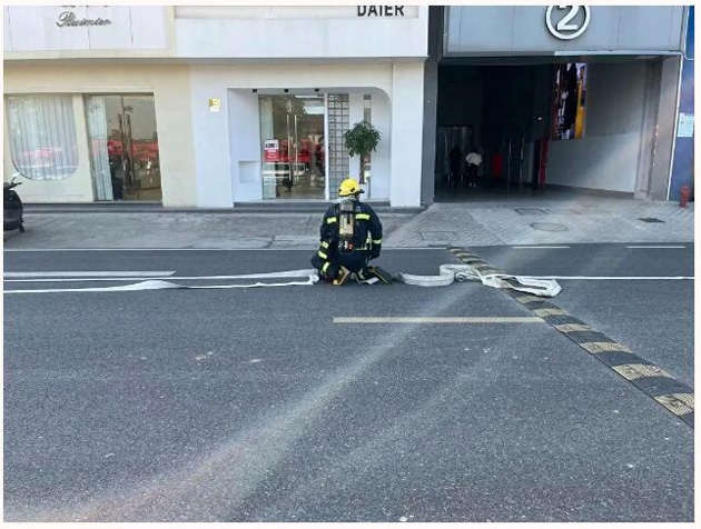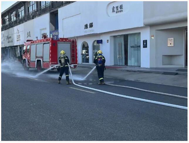 消防車操作演練--最后,東港鎮(zhèn)消防大隊(duì)的隊(duì)員在市場內(nèi)進(jìn)行了消防車操作演練,普及消防知識。