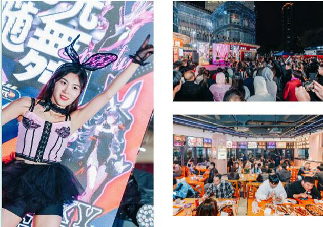隨舞派對(duì)、兔女郎主題演繹、主題COS巡游表演……雖是秋日,但新區(qū)五洲哥倫布廣場(chǎng)已然成為電音的海洋。在這里,破次元是常態(tài),制服誘惑隨處可見(jiàn)。各大餐飲店內(nèi)座無(wú)虛席,親朋好友三五成群,暢吃美食,暢聊人生。