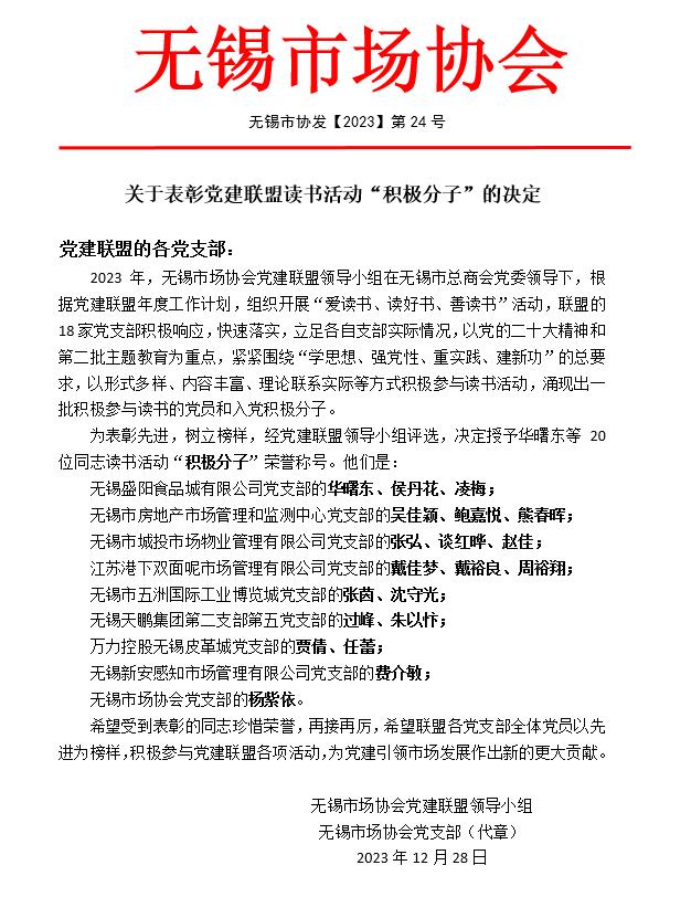 關(guān)于表彰黨建聯(lián)盟讀書活動(dòng)“積極分子”的決定