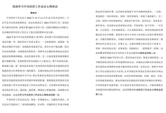 在學(xué)習(xí)了中央經(jīng)濟(jì)工作會(huì)議精神后,大家有感而發(fā),支部全體黨員一致表示,要緊密團(tuán)結(jié)在以習(xí)近平同志為核心的黨中央周圍,深入學(xué)習(xí)貫徹黨的二十大精神,全面貫徹落實(shí)中央經(jīng)濟(jì)工作會(huì)議精神,深刻領(lǐng)會(huì)黨中央對(duì)經(jīng)濟(jì)形勢(shì)的科學(xué)判斷,把堅(jiān)持高質(zhì)量發(fā)展作為新時(shí)代的硬道理,結(jié)合市場(chǎng)協(xié)會(huì)的工作實(shí)際,引導(dǎo)我市各類商品交易市場(chǎng)看到2024年無(wú)錫商品交易市場(chǎng)仍將是機(jī)遇與挑戰(zhàn)并存,困難與希望同在,經(jīng)濟(jì)回升、長(zhǎng)期向好的基本趨勢(shì)不會(huì)改變。