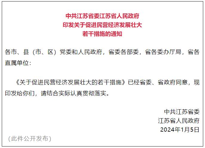 為全面貫徹落實(shí)《中共中央、國務(wù)院關(guān)于促進(jìn)民營經(jīng)濟(jì)發(fā)展壯大的意見》,進(jìn)一步促進(jìn)民營經(jīng)濟(jì)做大做優(yōu)做強(qiáng),發(fā)揮民營經(jīng)濟(jì)在推進(jìn)中國式現(xiàn)代化江蘇新實(shí)踐中生力軍作用,結(jié)合我省實(shí)際制定如下措施。