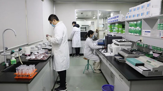偌大的豬肉市場里批發(fā)戶忙碌的身影已散去,散客人潮又來臨。為做好今年的春供,市場管理方從半個(gè)月前即啟動(dòng)春供保障方案,多管齊下確保貨源充足、價(jià)格穩(wěn)定,元旦市場成交白條4500頭,較平時(shí)增長40%,前來采買鮮肉、臘肉和灌制香腸的市民絡(luò)繹不絕。在天鵬二號(hào)冷庫月臺(tái),成排的冷鏈車輛正忙碌卸貨入庫,元旦當(dāng)天入庫439.3噸,出庫354.2噸,涵蓋禽類、調(diào)理品、水產(chǎn)、牛羊等數(shù)十品種。中華老字號(hào)“真正老陸稿薦”作為地方特色年貨供應(yīng)重點(diǎn)單位,提前備足食材,全員上陣、開足馬力置備年貨,60多位師傅一早開始了繁重的燒煮任務(wù),30余個(gè)品種每天10噸生產(chǎn)量,同時(shí)還確保無錫地區(qū)近30家門店每日新鮮鹵菜供應(yīng)。在天鵬檢測中心檢測室內(nèi),一排排試劑盒、一個(gè)個(gè)檢測樣本和忙碌的檢測人員構(gòu)建了天鵬食品安全防護(hù)體系,為確保群眾買得放心、吃得安心,檢測中心全體人員加班加點(diǎn),加大豬牛羊禽、熟食和水產(chǎn)品日常抽樣量,加密各類商品檢測頻次,強(qiáng)化腌臘制品專項(xiàng)檢測,檢測量較平時(shí)提高30%。